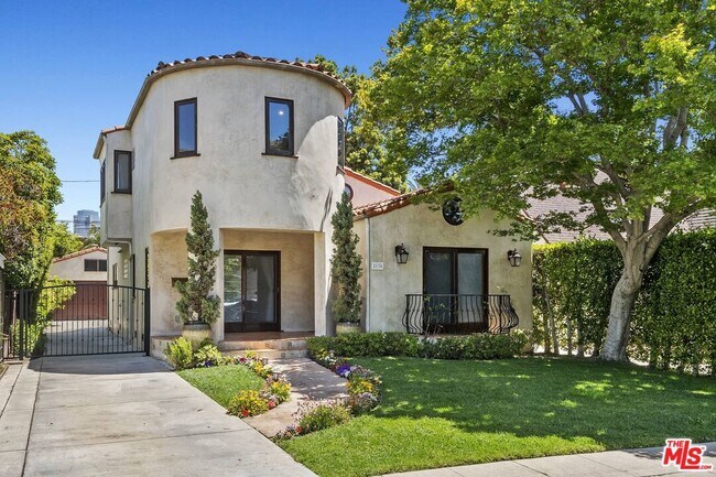 Stunning Architectural 2-story updated 3 bed/3 bath Spanish filled with natural light. Charming covered tiled front porch opens to living room with vaulted wood beamed ceilings, fireplace and front sliding door to balcony. Beautiful archway leads to... open kitchen with island, breakfast bar, stainless steel appliances including 6-burner Viking range/oven, opening to family room and dining room with beamed ceilings and 4 sets of double French doors opening to incredible entertainer's backyard with outdoor kitchen with BBQ and refrigerator and counter seating and firepit with seating. 1 bedroom/1 bath downstairs and 2 bed/2ba upstairs including tranquil primary suite with double French doors to wrap-around balcony overlooking Century City and tree top views, double-sided fireplace, custom walk-in closet and spa-like travertine finished primary bathroom with separate spa tub and shower and dual basins. Bonus open den/office upstairs. Features include additional bonus room and bathroom, hardwood flooring throughout, wood framed dual paned windows, central AC/heat and led recessed lighting. Finished garage with gated driveway. Ideal location close to Westfield Century City Mall, UCLA and the new Google Campus. Westwood Charter School. Available first week of August.