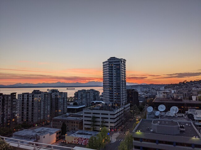 Lovely, Lively Belltown!! Quieter end of downtown, near Seattle Center, Myrtle Edwards Park and more. 97 Walk Score Beautiful building art-deco style. ‘Inter-generational Vertical Village.’ Great two bedroom, two bath condo. Panoramic view High Ceilings on the 16th floor of this fabulous building - See Videos below. Huge Windows to the Ceiling. Most Convenient downtown living is here at Seattle Heights, between Vine and Cedar. Residents are within minutes of work and play, as this condo in this central location would mean no commute to your downtown office or those critical appointments. Those commuting further away as this owner commuted to the Eastside, I-5, I-90 and the 520 bridge are all easily accessible. Close to the waterfront. Seattle Center, Pike Place Market, Key Arena, the Sculpture Park, the Cruise Ship Marina, So. Lake Union, Capitol Hill, 'Pill Hill', numerous music avenues, art galleries, Auction Houses, museums, the Opera House - all of downtown are literally on 'Your' doorstep! Lovely large mirror reflect the Olympic Mountains and the Puget Sound into the condo. Seattle Heights has 24/7 lobby staff-concierge services to provide a welcome to you and your visitors and offer great concierge Services. The Amenities are outstanding in our building - heated lap pool, jacuzzi, sauna, fantastic gym with marvelous equipment, great roof terraces north and south, large community room, reservable, with a great kitchen, large TV and fireplace. large TV and fireplace, all with wonderful views and with the roof terraces provide a gallery seat for July 4th and New Year Eve's fireworks displays! Seattle Heights has its own business center with computer, printer and fax machines. Great common spaces to relax, read, converse in. Sprinkler system. Central AC and heating. In unit full size washer dryer. Well fitted kitchen. Lanai/Balcony Imported stone and textured tile, granite are beautiful and utilized throughout the condo itself and the building. Key card access.